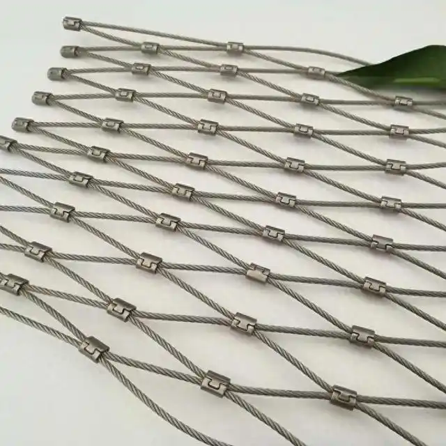 Cả hai loại dây cáp thắt nút và dây cáp có mô hình rhombic, nhưng chúng khác nhau trong cách kết hợp các dây cáp.sau này nhận được tên của nó cho ferrules liền mạch để kết hợp. Và màu sắc của lưới cáp loại ferrule có thể được tùy chỉnh. Đối với lưới cáp lông, công ty của chúng tôi có thể cung cấp dịch vụ tùy chỉnh để đáp ứng nhu cầu khác nhau của dự án của bạn. Thông thường, chúng tôi có thể cung cấp các dịch vụ tùy chỉnh để đáp ứng các nhu cầu khác nhau của bạn.loại nút và loại ferrule trong hình bên phải được chào đón nhiều hơn bởi khách hàng của chúng tôi.